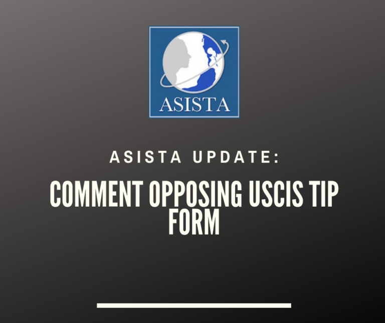 On April 16, 2019, ASISTA and the National Organization for Women (NOW) submitted a comment in opposition to the proposed USCIS Tip Form, as the form would be a tool for abusers and perpetrators of crime to weaponize the immigration system against survivors, with impunity. Read our comment here .