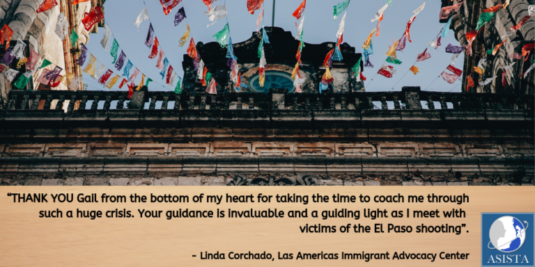At the request of Las Americas, which is coordinating support for El Paso shooting survivors, ASISTA is helping to bring together mental health, social work, faith-based, local political, and legal communities to work with the hundreds of immigrants harmed in the shooting. For more info on Las Americas work with shooting survivors, click here.