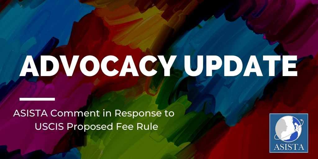 On December 30, 2019, ASISTA submitted its organizational comment in response to USCIS’ new proposed rule which increases immigration fees, further limits the criteria and availability of fee waivers, and includes a transfer of millions of dollars from USCIS to ICE. You can read ASISTA’s comprehensive comment here .